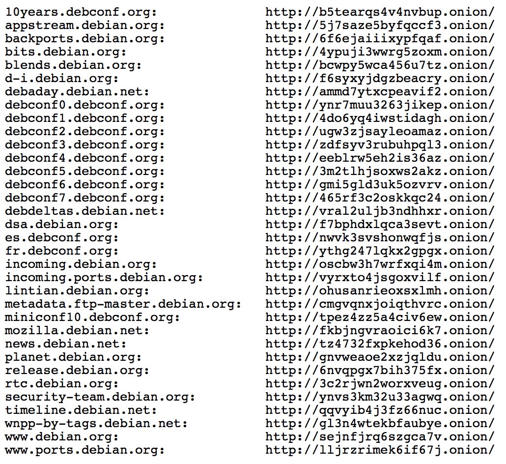 The freedom to use open source software may be compromised when access to that software is monitored, logged, limited, prevented, or prohibited. As a community, we acknowledge that users should not feel that their every action is trackable or observable by others. Consequently, we are pleased to announce that we have started making several of the various web services provided by both Debian and Tor available via onion services.