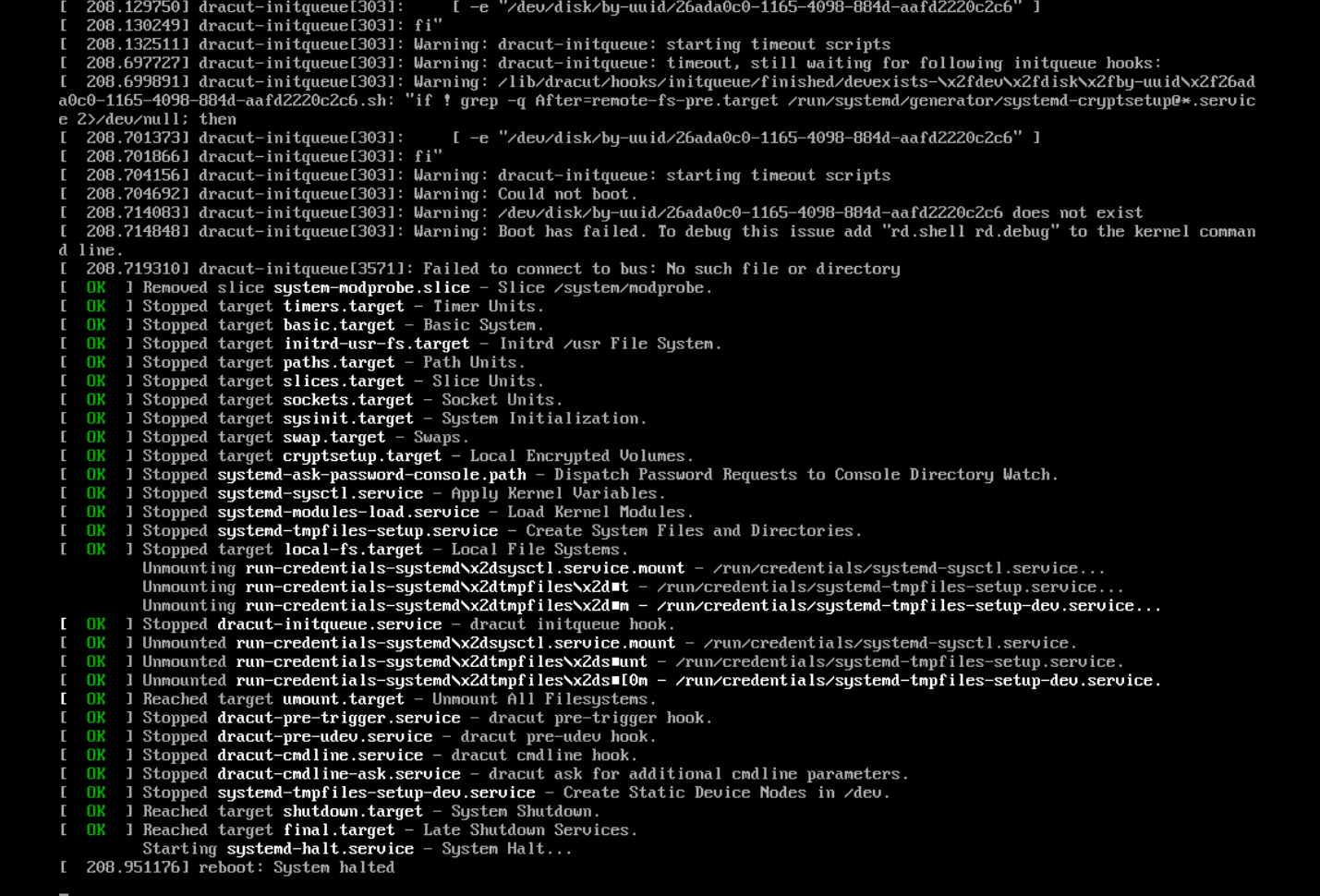 Right after, a “system halted” message appears and the system stays completely hung there.