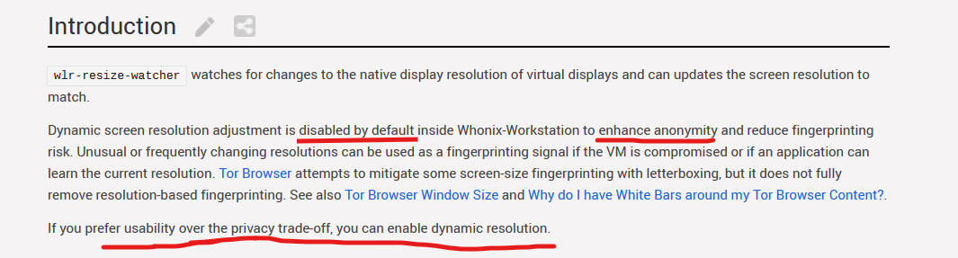 Why was this feature implemented? I read somewhere that you shouldn’t use whonix in full screen (i forgot the reason), so why was this implemented? You will always have the scroll bars UNLESS you use fullscreen, which is not recommended by whonix. So i dont understand? You can’t use the vm like this because half the screen is cut off. Or am I missing something?